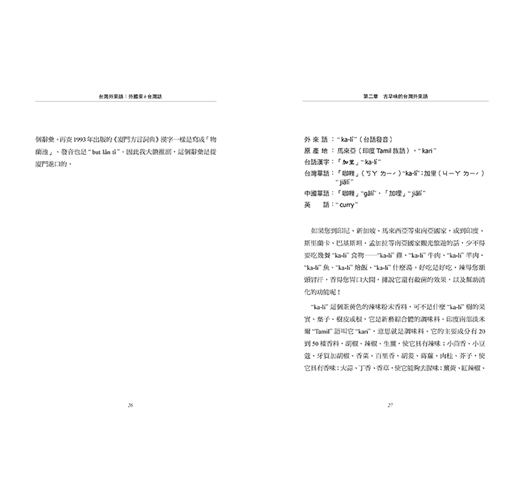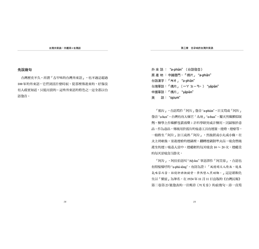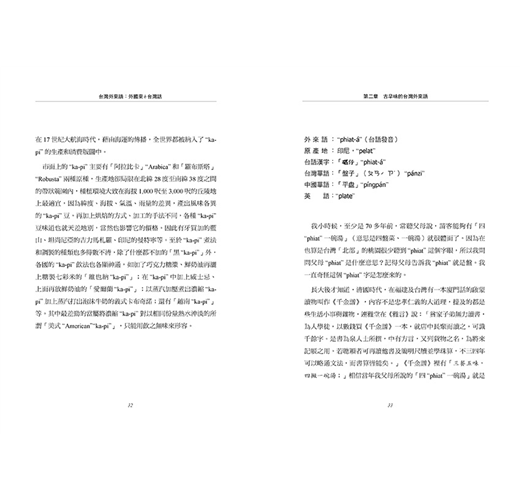 ◎本書收錄不同時期傳入台灣的外來語,作者不僅分析了這些詞語的意義、發音、結構,也詳細記錄了它們在台灣社會定著的過程。