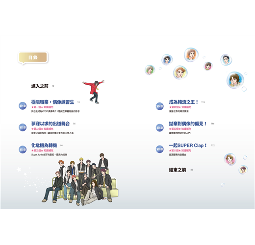 ◎Super Junior組團過程圖文書。原本以實驗團定位的團員們如何克服艱辛訓練過程,發揮正向力量,站上舞台成為韓流帝王!