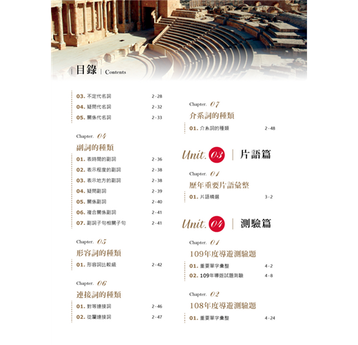 考試要高分,不只是累積單字量及熟悉文法規則,透過不斷加強練習考試題型,有效將單字及文法規則運用在考題上。本書收錄最新109~105年領隊及導遊試題,採以英語邏輯思維方式,逐一中譯試題,幫助考生更快看懂句子,拆解字義。並將領隊、導遊試題依屬性逐題分類題型及文型,有效掌握命題方向。