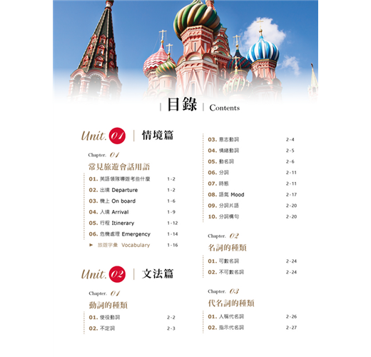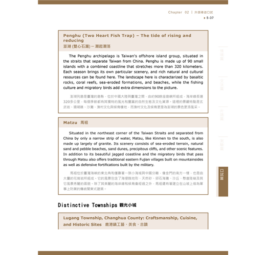 本書選用日本進口紙質,純金油墨打造,雙色印刷,重點分明,讓閱讀更舒服!領隊、導遊英語考試與英文檢定、升學考試最大的差異,在於考試的方向更為生活化且實用性高。本書依照命題類型,歸納出情境會話篇、文法篇、片語篇、測驗篇及口試篇五大單元。其中,口試篇為英語導遊須加考之單元。