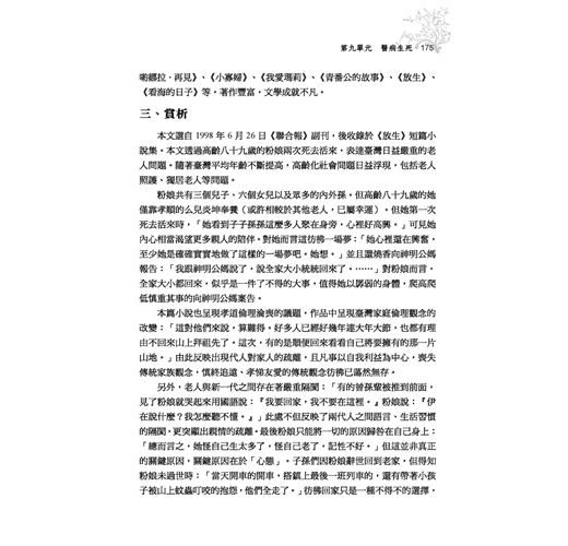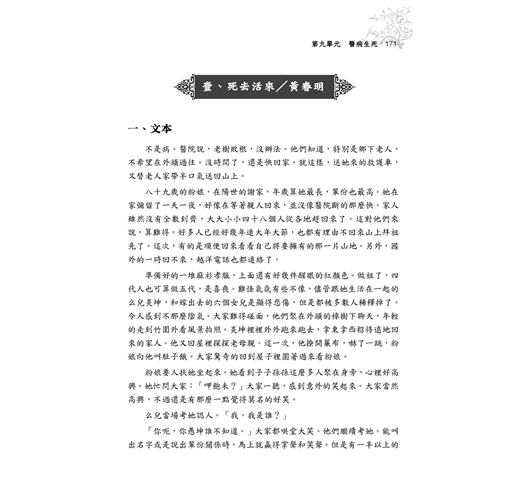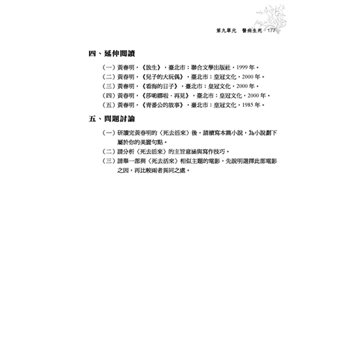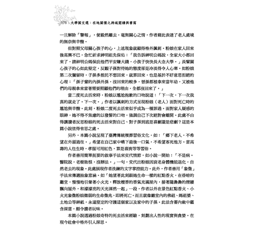 讀本分為九大單元,分別對應人文社會、哲學心理,及餐旅廚藝、機電資材、管理財銷、設藝傳播、外語休閒、生物藥保、醫護健體相關領域,選文兼顧不同院系需求。其中,鄉土情懷、民俗典儀與學生所屬院系之單元,為學期必授教材,教師另就自我課程規劃,教授對應其他院系單元課程。透過跨域閱讀與書寫,啟迪在地自覺,涵容全球視野。