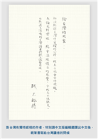 作者手繪象徵台灣的梅花水墨畫作與親筆中文信