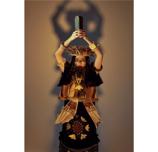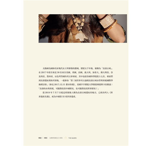 經過了前述九個多月在服裝上的設計與製作,臨拍攝前兩個日夜,由蕭素卿、李新紅兩位幫助洪福伸沒日沒夜的作最後的縫製與調整。然後通知早已精心挑選的團隊成員:模特兒陳姿妙、彩妝及髪型設計何柏蒼、攝影師韓嶽良、燈光助理黃建豪及鄭為仁,把「太陽神鳥國女王」重現給世人。本書分為女王以真人作為「大祭司」,以及「女王」本身兩個主要部分詮釋。這是一位穿越人間與神界的遠古女王,也是當時人與神間閃耀著火花的生命之歌。當讀者一頁頁翻動本書時,片刻間沉寂幾千年的古物,忽然就像在黑夜中聽到音樂響起、燈光一亮、紅幕拉開,古代女王閃亮登場!那種奢華綻放,那種驛動張揚,媲美當代世界珠寶時尚的頂級盛宴!