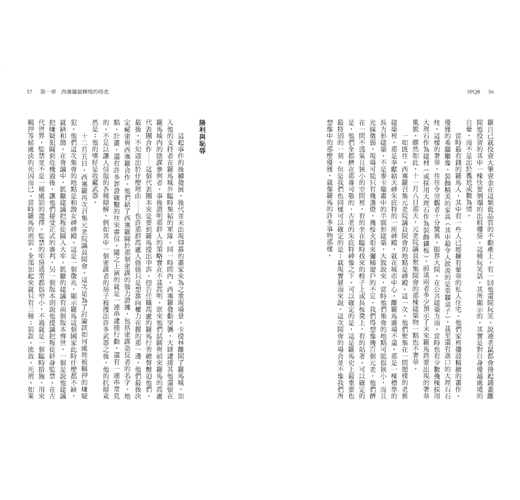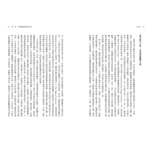 從古到今,一直都有人提筆重寫羅馬史,現在也依然如是。就某些方面來說,今日的我們比羅馬人自己更了解古羅馬。換句話說,羅馬的歷史是一部仍在書寫中的作品。我這本書是這個龐大的書寫計畫的部分貢獻。我在這裡提出我的看法,嘗試說明為何羅馬史重要。我的書名取自另一個流行的拉丁文片語:Senatus PopulusQue Romanus,意思是「元老院與羅馬公民」。本書的寫作來自我個人對羅馬史的好奇,也來自於我的信念:時至今日,與古羅馬展開對話仍然是值得一做的事。這本書也來自我的一個提問:為何位於義大利中部一個不起眼的小小村鎮,後來竟發展成巨大的強權,統治的領土竟橫跨了三大洲。