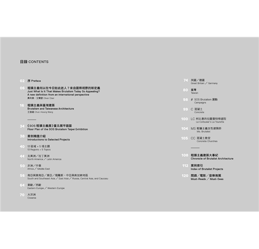 ★忠泰美術館自2020年7月4日至11月29日,展出《SOS 拯救混凝土之獸!粗獷主義建築展》,於展覽期間凡於美術館服務台出示本書:《SOS 粗獷主義:臺灣與全球建築選輯》,即可享展覽優待票價(80元)參觀優惠。