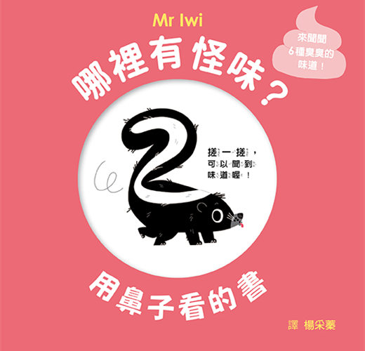 而《什麼這麼香?用鼻子看的書》與《哪裡有怪味?用鼻子看的書》則在一般遊戲書的基礎上,加入了「嗅覺」的元素,孩子只要用手搓揉書頁,就能聞到不同的氣味。在這兩本書中,孩子可以認識草莓、櫻桃、柳橙等7種水果的香味及顏色,還有來自街道、市場、農場等6種場域的常見物品與怪味。