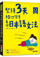 ●三天學會一種日語文法,專為「利用零碎時間學習」的現代人設計的文法書本書專為自認沒有恆心、毅力或超忙碌的日語學習者所設計,一個重點文法只要用三天就能解決,十個文法總共是三十天份的學習,聽起來很多嗎?別擔心!每章的重點文法並不需要接著連續學完,跟著本書的設計,完成一章共三天份的文法學習,下一章等你有時間、有興趣時再讀就好了!現在的社會,「持之以恆」的難度太高,三天份的熱情一樣也能好好利用的學習才厲害!好好利用你的三分鐘熱度,跟著本書為你排定的學習課程,短時、高效的打好日文基礎!