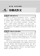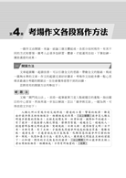 第二篇針對前文所介紹之不同題型,廣收歷年試題及範文,並有各段落評析,詳細說明「起、承、轉、合」寫作重點為何,絕對能為寫作加分!