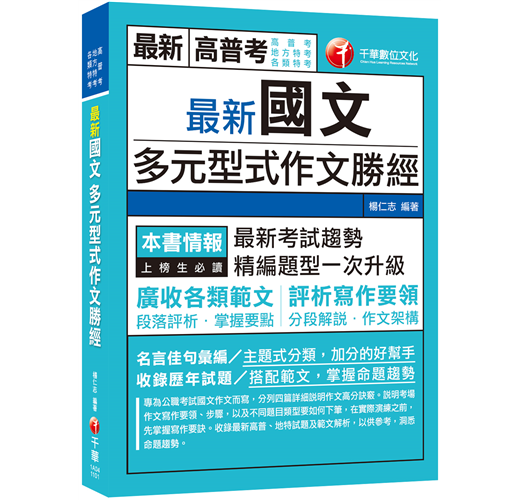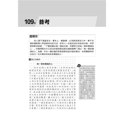 針對考場作文說明寫作要領、結構法,不同類型的題目如何寫作,詳細說明各類型題目之特色以及高分要訣,在實際演練之前先掌握寫作重點,知己知彼!