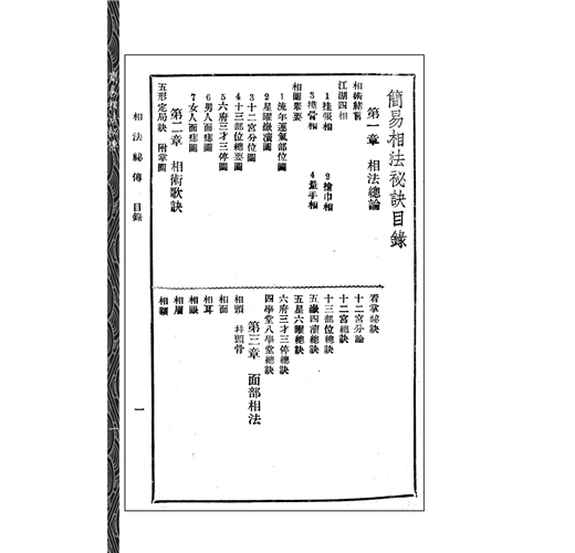 讀者再參民初及香港、台灣早期相術著作如:《冰鑑集》、《中西相人探原》、《相微》、《簡易相法秘傳》、《相法講義》、《相理秘旨》、《人相學之新研究》、《看相偶述》、《骨相學》、《新相術》、《中西相人探原》、《鑑人術》、《新相人學講義》、《手相學淺說》、《無師自通相命大全》、《現代人相百面觀》、《相人新法》、《成敗論手相》、《香港新相術二種》、《新編手相學大全》、《人相與相人》等,可知中國傳統相術,及民初以來融合傳統相術與傳統西洋相術、現代西洋新相術(性格分折)、骨相學、東洋相術的新相術體系的異同。