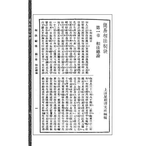 簡易相法秘傳,【民國】上海星相研究社編。一冊平裝。虛白廬藏民國年間(一九一二 — 一九四九)刊本。