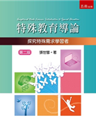 特殊教育導論是探究特殊教育需求學習者的入門,本書包含兩大部分:(1)特殊教育的基礎;(2)各類特殊需求學習者。內容主要兼顧國內的現況與國外先進國家的特殊教育思潮、法令、重要理論及教育實務,當能引領初學者悠遊其中,揭開許多這類兒童、青少年和成人有待了解的特徵和相關課題。