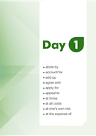 此外,老師還特別規劃了一個為時 30 天的學習計畫,希望大家按部就班,每天背誦 10 個英文片語。不需佔用太多時間,你可以充分利用像是通勤、下課這樣的片段時間,一天只要學會 10 個片語,以此方式循序漸進、慢慢累積,只需一個月的時間你就能靈活運用這 300 個高頻率片語。每當各種大大小小的考試前稍加複習一下,你就能戰無不勝、攻無不克!