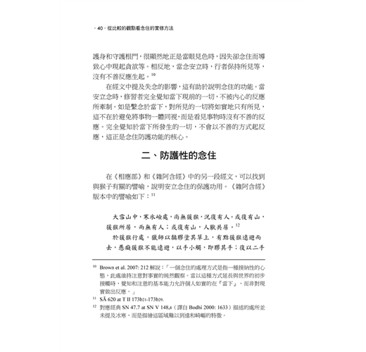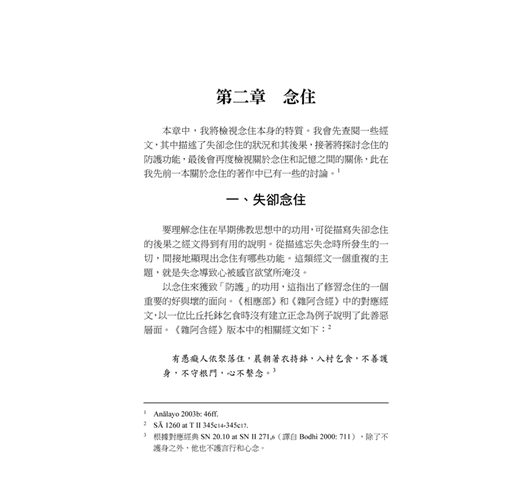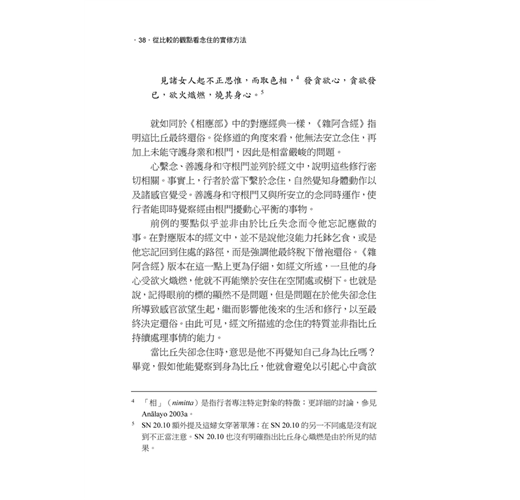 「雖然我以學術研究方法表達經文,而且在部分討論中我需要處理較為理論性的議題,但是整體而言,這本書是為修行者所寫的,如何能對禪修實踐有幫助,是我這個研究的出發點。」——無著比丘(Bhikkhu Anālayo)
