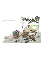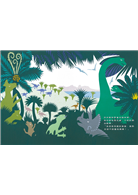 老爺爺一邊喀嚓喀嚓剪紙,一邊做出了恐龍王國的紙雕劇場。舞台的佈景是草木茂密的森林,小昆蟲、蜥蜴、青蛙,牠們全躲在樹叢裡!