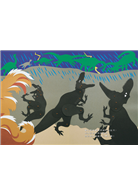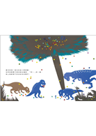 這是一個會讓人滿心期待,很想知道接下來會發什麼事的故事,當老爺爺喀嚓喀嚓聲不停的剪紙,同時也創造出許多不同的恐龍。恐龍劇場的舞台背景隱藏了許多生物,有蜥蜴、變色龍、青蛙、蜻蜓……還有.森林、山川湖泊、雷雨烏雲,都是以剪紙創作出來的。雖然是很簡單的故事,松岡達英不著痕跡的將恐龍的習性和特徵表現出來,把知識隱藏在故事中,真的很高明! --miles媽媽(小孩五歲)
