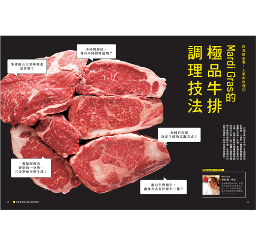 書中也向全日本最強的名店主廚取經,不但介紹了多種「極品肉類」的菜單,搭配圖片,詳細解說不同...