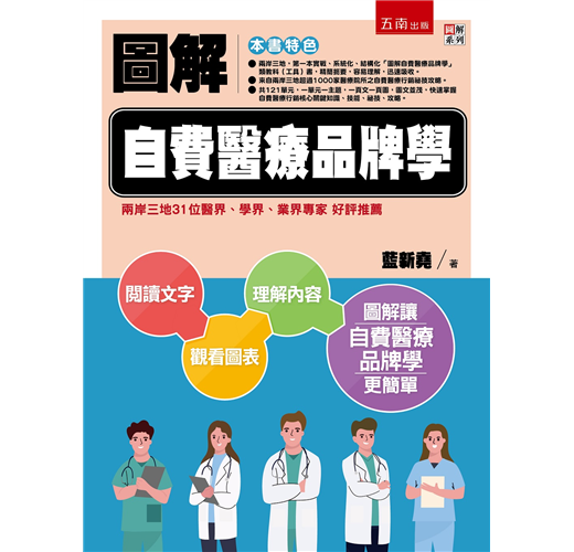 《圖解自費醫療品牌學》是一本淺顯易懂,可以快速上手實作的工具書。分為18章、121個主題,以系統化、結構化、視覺化、圖解思維建構自費醫療品牌經營的內涵。適合大專院校的醫學院、公衛學院、護理學院、牙醫學院、健康學院、管理學院等相關系所同學研讀,更是自費醫療院所「經營者、院長、副院長、醫生、部門主管、品牌、行銷、企劃人士」必讀的一本「自費醫療品牌學」工具書。