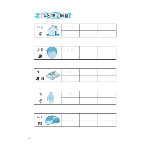 藉由字形解析、筆順習字帖、單字練習,一次上手日語五十音!