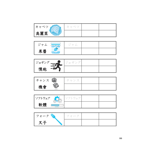運用習字帖練習運筆之後,進階學習生活常用字彙,更加熟練日文字形與筆畫。