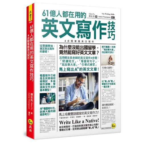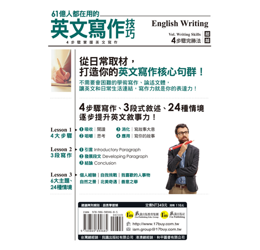 台灣將在2030年全面邁向雙語國家,但是現在不需要花大錢出國進修ESL語言課程,也能提升英文實力!就讓《61億人都在用的英文寫作技巧:4步驟掌握英文寫作》幫你突破英文寫作!