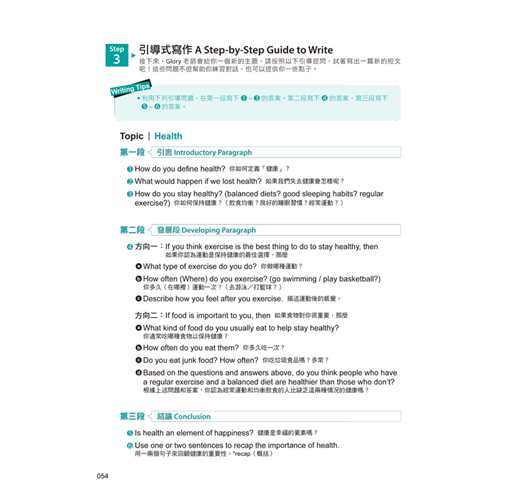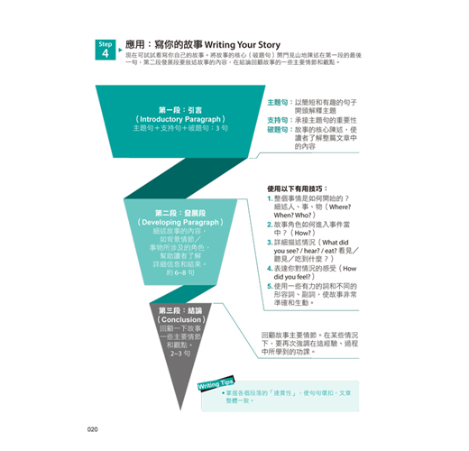 只會寫短句已經不夠應付考試!透過作者獨創的「倒三角三段式寫作」+「段落引導式提問」,幫你的零散句子化「繁」為「整」!引導讀者將生活經驗寫成短句,句子構成段落,段落形成文章。學會這些技巧,任何想法都能透過英文精準表達!