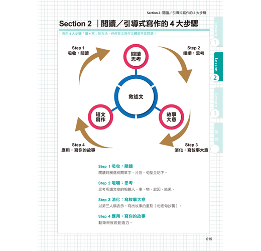 寫作起頭難!段落的起、承、轉、合總是你寫作的障礙嗎?先別急著寫出新的文章!可試著運用本書的「引導式提問」練習寫故事大意,因為好的寫作源自於模仿!