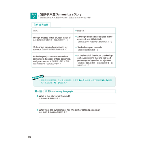 練習以第三人稱重述故事大意,就能迅速抓出任何文章的核心重點!運用書中的「自問自答法」作思考訓練,能夠快速熟悉英文文章的段落結構,同步提高英文閱讀、寫作成績!