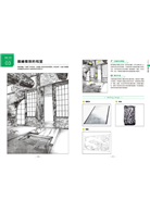 ▲除了大自然,建築物也很美你可以不畫邪惡的黑龍和勇者,但你不可能不畫人群出沒的街道,或荒地中的廢墟,如何構圖才不會讓大街上只是相同形狀的建築物排列在一起,顯得無趣枯燥?斑駁的磚頭、屋頂上的花紋、廢墟的外牆和破碎的玻璃,乃至裝飾著和室的木紋和榻榻米等,看似獨特困難的黑白背景,不能透過色彩來表現技巧時,應該如何掌握。本章節為你一個步驟一個步驟詳解室內室外的表現技法,透過膠水和砂紙磨擦,你可以輕易製造出木紋,塗上好黏便利貼可以快速畫出屋頂磚瓦,實用手法一目了然!