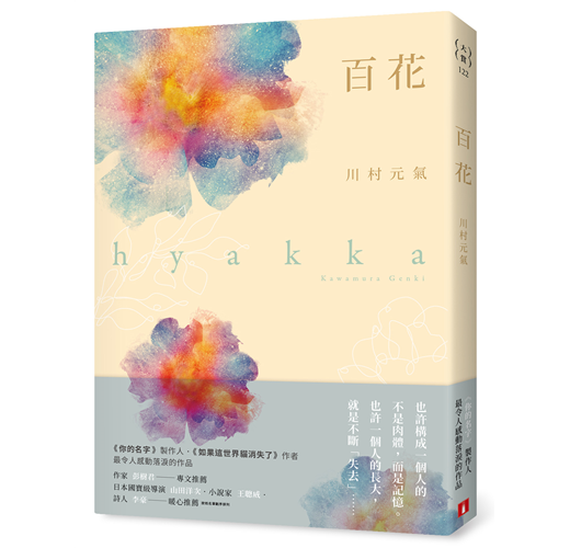 在川村元氣膾炙人口的作品《如果這世界貓消失了》裡,為了延長生命,主角聽從了惡魔,同意每天讓一樣東西消失,用來交換繼續看見明日的太陽,但任何一樣東西消失,所有與那樣東西連結的記憶也就一併消失;而在這本《百花》裡,消失的是記憶本身,失智讓腦神經細胞漸漸死亡,於是腦海中曾經靠著記憶建構的一切也隨之土崩瓦解。每個人都自成一個獨立的世界,而人與人之間的世界是靠著記憶來連結的,當記憶不在了,彼此之間還有什麼能存在呢?