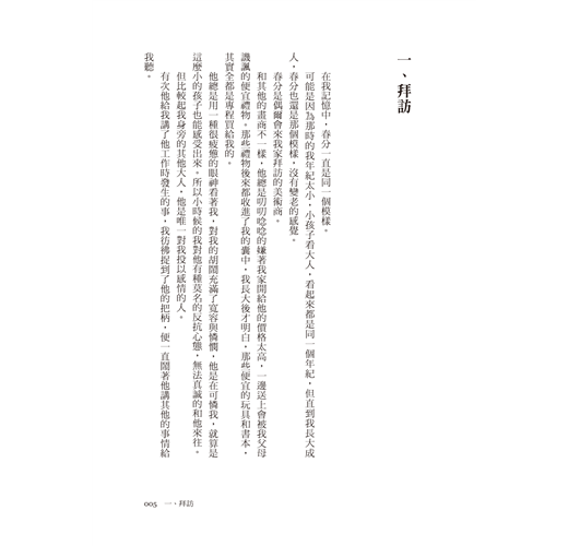 可能是因為那時的我年紀太小,小孩子看大人,看起來都是同一個年紀,但直到我長大成人,春分也還是那個模樣,沒有變老的感覺。