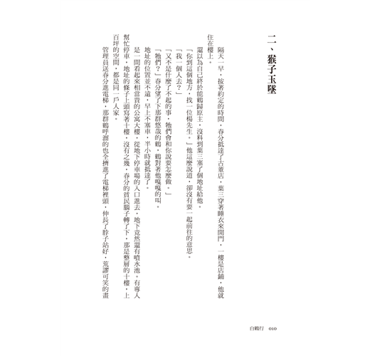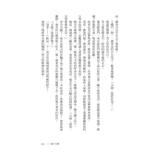 管理員送春分進電梯,那群鶴呼溜的也全擠進了電梯裡頭,伸長了脖子站好,荒謬可笑的畫面,讓春分完全失去了現實感。