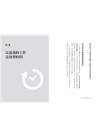 有些人想拿來念書和運動,或是從事個人興趣、陪伴親朋好友、充實自己的技能等等。我認為只有這種自由時間,才能豐富我們的人生。本書會介紹我反覆琢磨出來的「拒絕浪費的省時技巧」,以及「確保自我空閒時間的方法」。