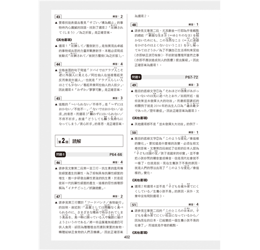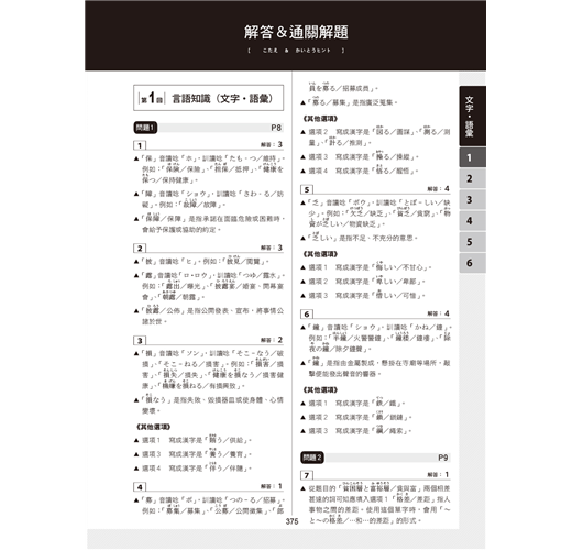 本書符合日檢合格高手的最愛,例如:「日語漢字的發音難點、把老外考得七葷八素的漢字筆畫,都是熱門考點;如何根據句意確定詞,根據詞意確定字;如何正確把握詞義,如近義詞的區別,多義詞的辨識;能否辨別句間邏輯關係,相互呼應的關係;如何掌握固定搭配、約定成俗的慣用型,就能加快答題速度,提高準確度;閱讀部分,品質和速度同時決定了最終的得分,如何在大腦裡建立好文章的框架」。只有徹底解析出題心理,再加上戰略上的方向指引,培養快速解題的技巧,合格證書才能輕鬆到手!