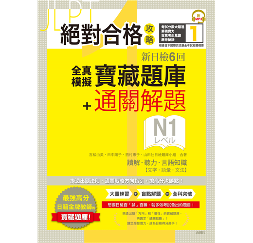 努力雖然重要,但考試勝敗的關鍵在,摸透出題「方向」和「慣性」,再講求「戰略戰術」。因此,為掌握最新出題趨勢,本書的出題日本老師,通通在日本長年持續追蹤新日檢出題內容,徹底分析了歷年的新舊日檢考題,完美地剖析新日檢的出題心理,比照日本語能力試驗規格,製作了擬真度100﹪模擬試題的寶藏題庫。讓考生知道會考什麼題目,才知道如何為打勝仗而做準備。這樣熟悉考試內容,多做會考的寶藏題庫,將讓考生在關鍵時刻,突然爆發潛力,贏得高分!