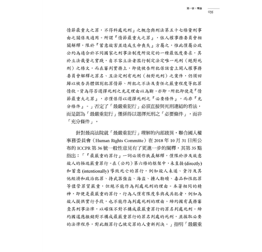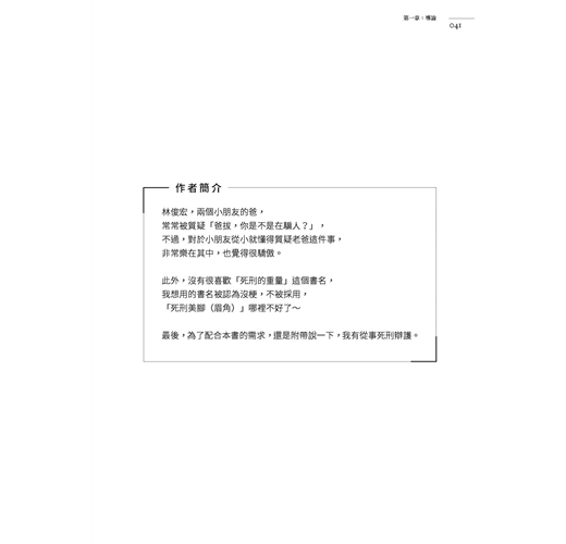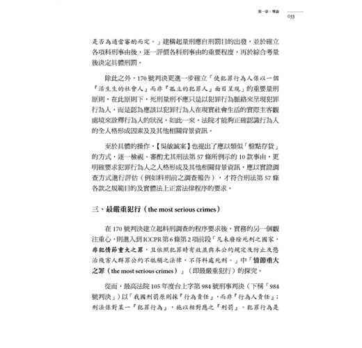 本書從國際公約的規定,延伸到死刑辯論的概要,然後進展到一般性的量刑證據調查,觸及萬年難題的「教化可能性」,最後開展了將來發展的可能性。(李茂生)