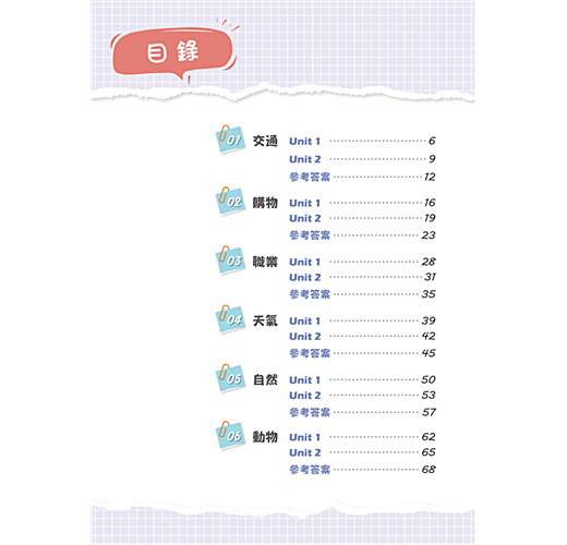 各單元皆附有重要單字及句型文法說明,除了讓學生具備較同齡學生優秀的英語實力,更可作為學生銜接國中小課程的橋樑。