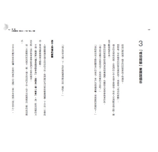 相對地,有些愉快的回憶也應該放下,那就是「成功的經驗」。