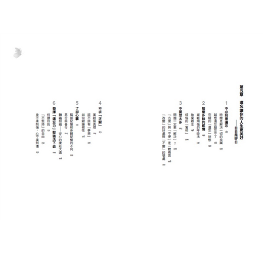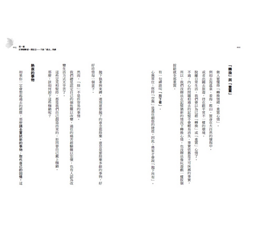 作者多年接觸前來沉思的參禪者,他們最大的煩惱,就是受到過去的經驗或回憶所困擾。從日常生活、職場環境中,作者分析了各種引起我們煩惱的人事物,並提供讓你放下過去的小方法。不受過去約束,走好今天的每一步,身在此時此刻,才能活出未來的自己。