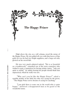 1.〈快樂王子〉:熟知城中人們貧苦的快樂王子一點也不快樂,直到在小燕子的協助下,他們貢獻出了所有……