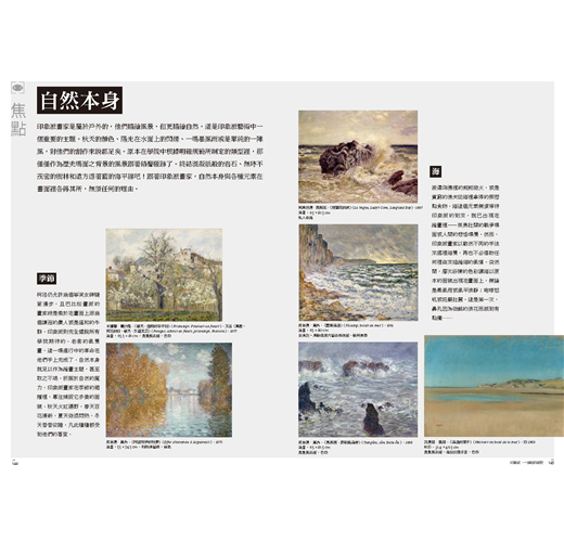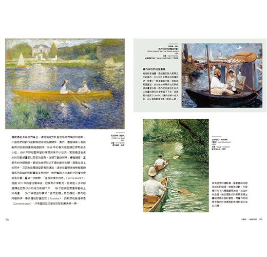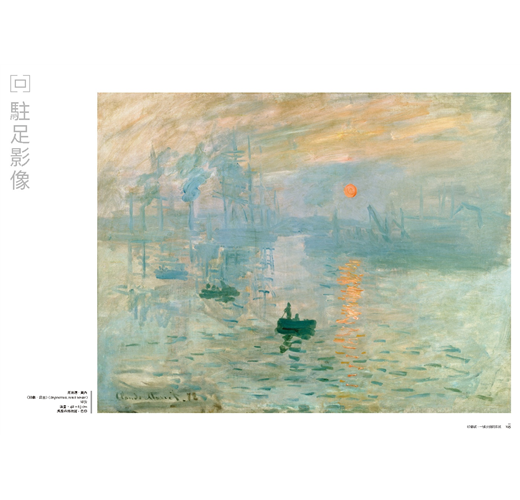 ◆印象派畫家毅然決然地拋棄宏大主題與雄偉巨畫,將注意力集中在微不足道的小事、日常的平凡及暫停、懸置的時光。傾聽圍繞在他們周遭的一切,他們專注於這些細微的片刻,思索如何表現其中的詩意與情感。