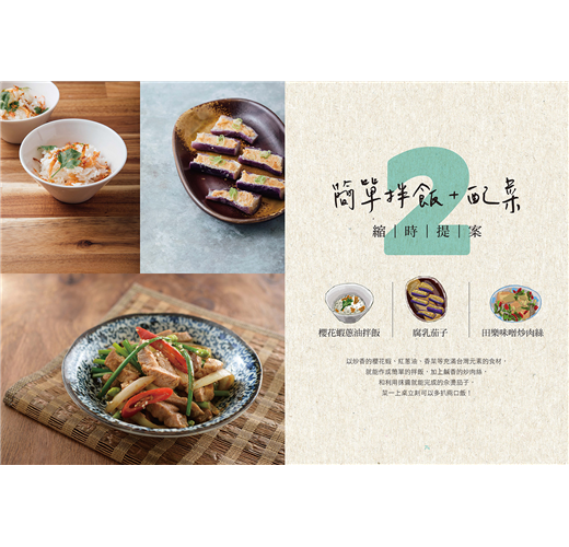 滿分晚餐新提案,教你應付全家大小的味蕾!每天最難的問題莫過──晚餐吃什麼?家常菜煮來煮去還是那幾道,想為家人變化口味,又想不出新菜色、嘗試新挑戰。本書依照情境搭配晚餐提案,有主食+配菜一鍋煮的懶人提案,和在假日先準備好的快速常備菜,和簡單拌飯+配菜的縮時提案,讓你下班不用手忙腳亂,輕鬆完成營養均衡的美味晚餐。