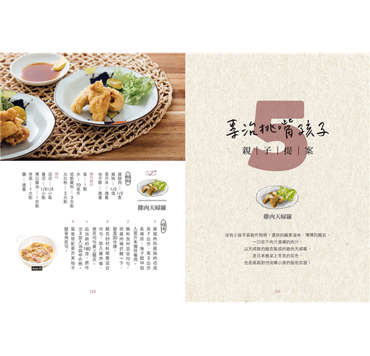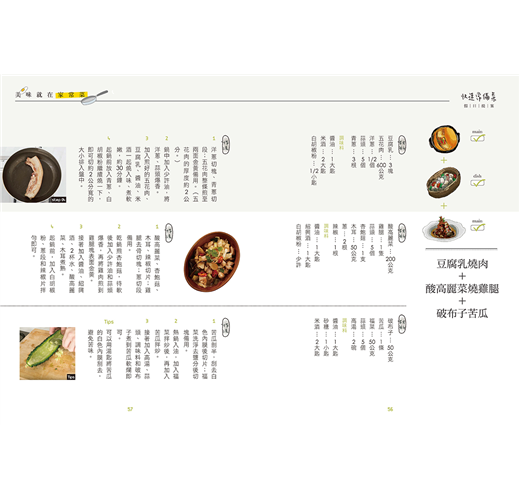 想要簡單料理,材料也必須好取得,平凡的食材利用不同的料理手法,就可以讓料理有新面貌。利用常見的醃漬物,製作有媽媽味的台菜家常菜;家有挑嘴孩子的話,就把不愛吃的菜變好吃的親子提案;週末朋友來聚會,就用小酌提案來展現你的料理工夫;最後還有暖心又暖胃的好湯提案。讓忙碌的忙碌煮婦/煮夫每天帶給家人幸福的滋味!