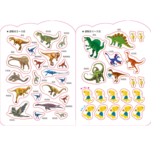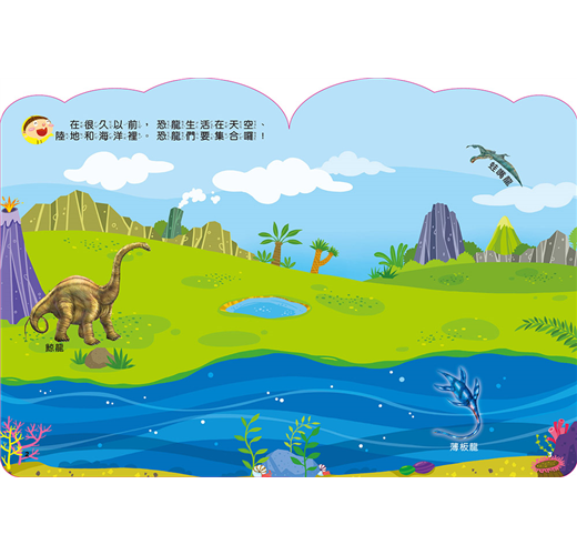 主題具知識性與趣味性,認識恐龍的時代、分辨肉食性與草食性恐龍,並標示恐龍的名稱,提升孩子認知與創造力。