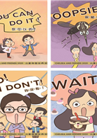 小喜是小心的孩子。小南不是。在這本《唉呦!》 中,為了不讓小南被蚊仔叮更多的包,小喜、小楷及小南決定找到蚊子寶寶生活的地方,把他們清除掉。他們成功了嗎?
