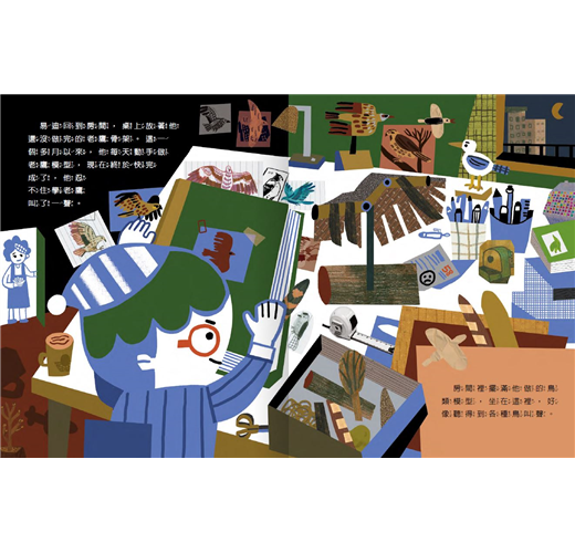 易迪的作業老是寫不完,考卷常常滿江紅,什麼都慢半拍,老師常常忍不住對他發脾氣,同學也覺得他好奇怪。不過其實他的觀察力驚人,不管是天上地上,還是樹上的鳥兒,每一隻他都能仔細的畫下來;他的耳朵很敏銳,知道那些鳥兒是開心還是生氣;他一點都不懶惰,每天都認真執行一個神祕的計畫。他相信,只要堅持下去,神奇與美好的事情一定會發生。
