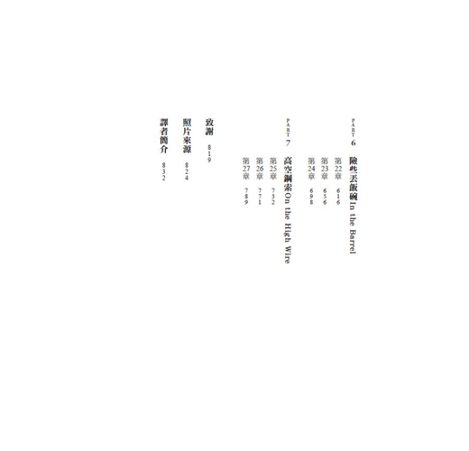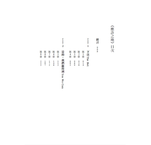 前言 PART1‧下注The Bet PART2‧是的,我們做得到Yes We Can PART3‧叛徒Renegade PART4‧傲骨之戰The Good Fight PART5‧世事就是如此The World as It Is PART6‧險些丟飯碗In the Barrel PART7‧高空鋼索On the High Wire 致謝 照片來源