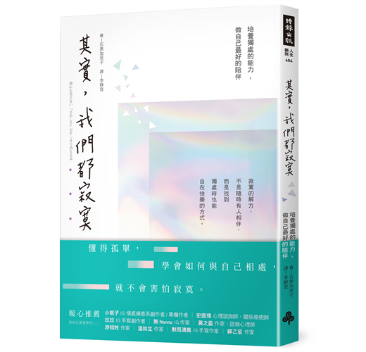 日本知名心理諮商師石原加受子認為人會感到寂寞,是因為我們渴望被愛與關懷,也總想尋求別人的認同,因而無法自我肯定。她認為不應將情緒的主導權交給別人,而要用「以自我為中心」的想法與生活方式,放下依靠他人尋找存在感的執念,並透過獨處時的me time,聆聽內心的聲音。唯有做自己、理解自己、也享受自己,,才能真正和「寂寞」道別!