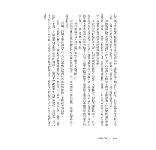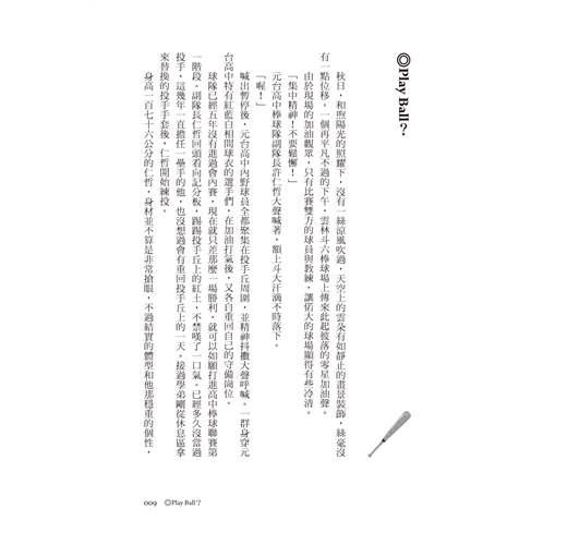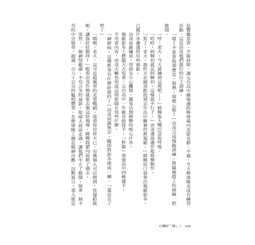 這本《國球的眼淚》便是在那樣的年代背景下出版問世,也因為這樣的巧合,許多讀者朋友跟著這本小說的主角們,一同再次歷經整個台灣職棒興衰與許多令人心痛之處。