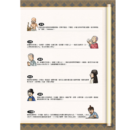 丁若鏞朝鮮後期學者,字美鏞,號茶山。改革柳馨遠及李瀷的實學並集大成。「辛酉邪獄」(西元1801年)時被流放到全羅南道的康津,十八年後才獲釋,著有《牧民心書》、《欽欽新書》。